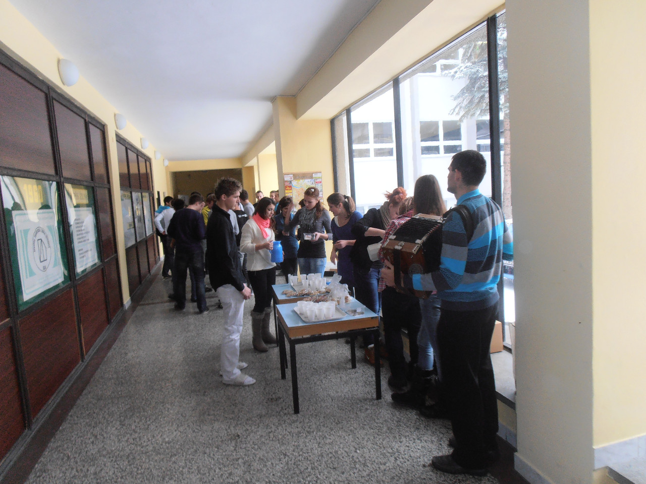 S nápadom pomôcť chorým deťom prostredníctvom projektu KRTEK V SÍTI nás oslovili naši rovesníci z Obchodnej akadémie, Veľká okružná 32, Žilina, ktorí navarili detský punč, napiekli medovníčky a kysnuté rožteky a prišli ich na našu školu predávať za symbolickú sumu. Pri predaji príjemnú atmosféru dotvárali tóny klasickej heligonky, ktoré nám vylúdil žiak z obchodnej akadémie.
